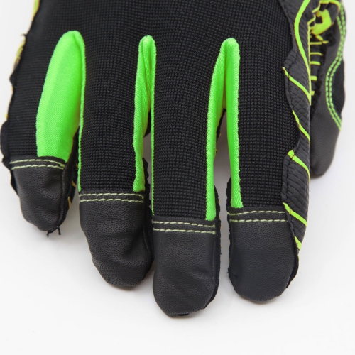 Kraftig anti-vibrationshandske med stötdämpande gel i hela innerhanden även upp i fingrarna. Gelen absorberar vibrationer för att minska riskerna för vibrationsskador vid arbete med tyngre maskiner. Reducerar riskerna för vit hand, karpaltunnelsyndrom och nervskador. Ovanhand i elastisk Spandex med Lycra paneler för bekvämare passform. Fingertoppsförstärkningar i PU med dubbla sömmar. Slitstark, räfflad PU i innerhanden. Räfflorna i materialet ger ett ökat grepp även i blöta förhållanden. Greppförstärkt med PU upp över pekfinger och lillfinger. Ofodrad. Högre krage i åtsittande Neopren med kraftigt karborrespänne som gör att handsken sitter säkrare på handen.